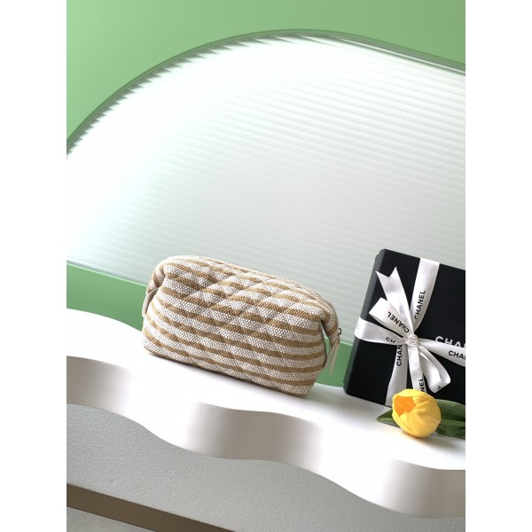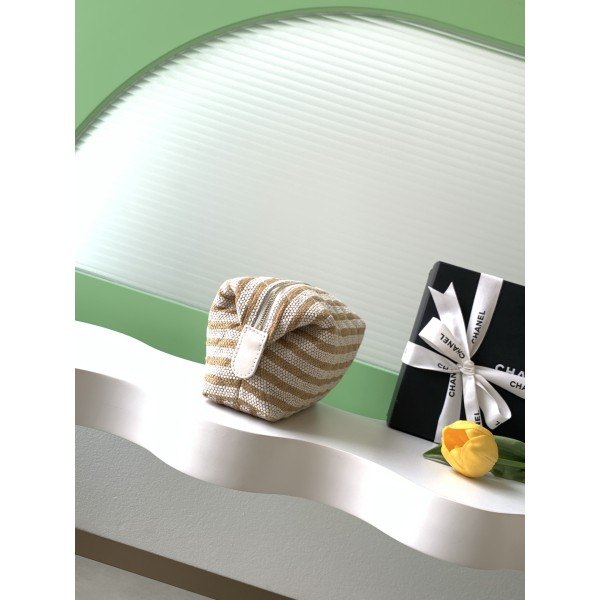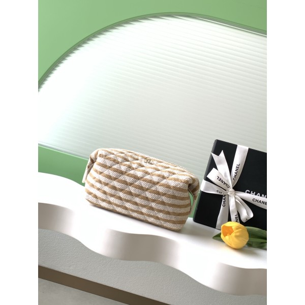 • 샤넬(CHANEL) 26C 베이지 스트라이프 미니 클러치 파우치 백 가방
