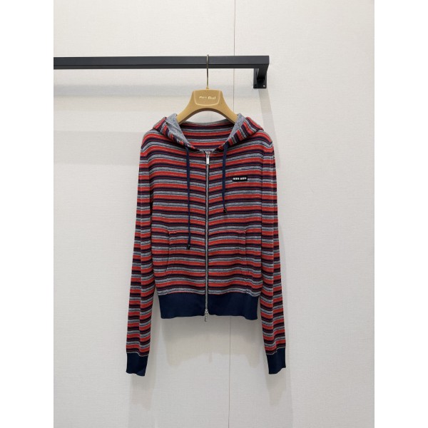 미우미우(MiuMiu) 스트라이프 로고 후드 자켓 재킷 의류 > 여성 아우터