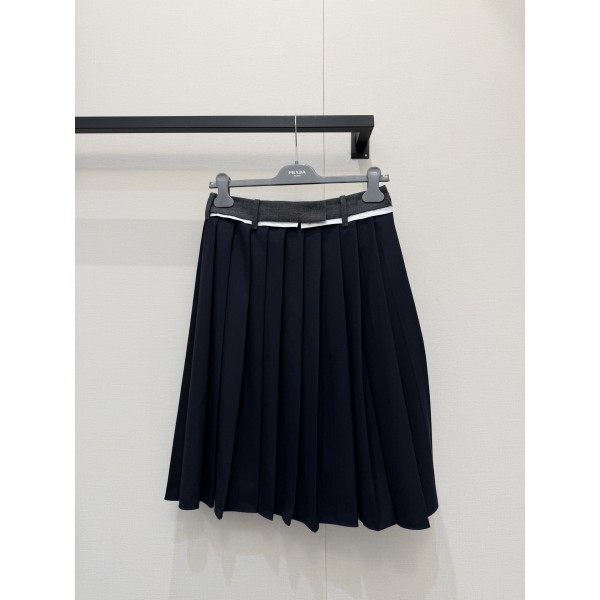 소재: 탄탄한 패브릭과 포근한 트위드 소재가 섞여 있어 입체적이고 고급스러워요. 디자인: 허리 부분의 양모 배색 밴딩과 프라다 로고 패치가 확실한 포인트가 됩니다. 핏: 체형을 예쁘게 커버해 주는 A라인 실루엣과 살랑거리는 주름(플리츠) 밑단이 매력적이에요. 디테일: 안감이 꼼꼼하게 들어가 있어 착용감이 편안하고 비침 걱정 없이 입을 수 있습니다. 분위기: 차분한 네이비 컬러로 지적이면서도 세련된 프레피 룩을 연출하기에 딱이에요. 사이즈: S, M, L ㅡ #의류