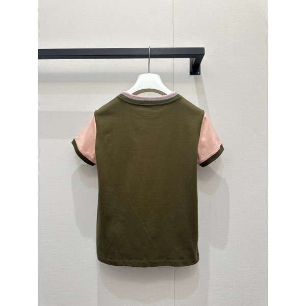 로에베(Loewe) 올리브 핑크 배색 반팔 티셔츠 의류 > 여성 TEE& TOP