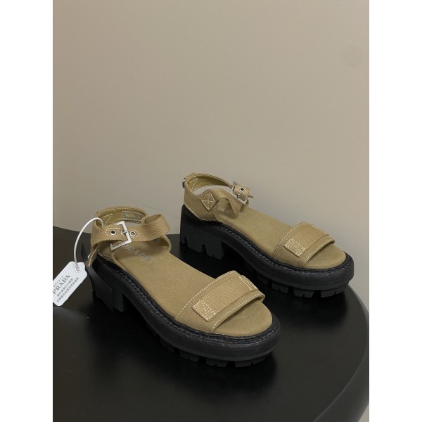 프라다(PRADA) 로마 원스트랩 캔버스 플랫폼 샌들 신발 > 샌들/슬리퍼