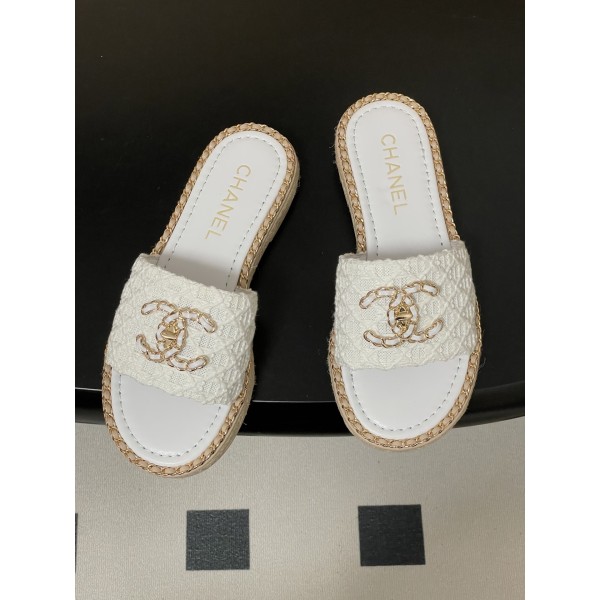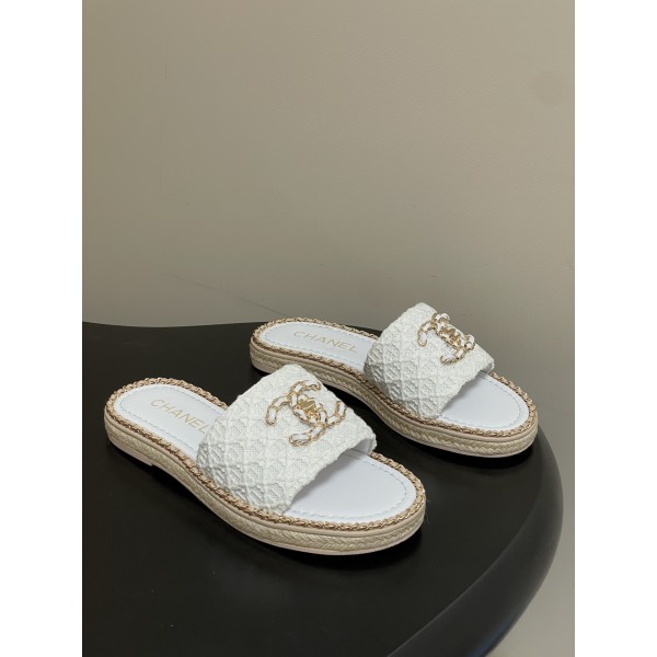 "아이코닉 체인 디테일과 퀼팅 패턴이 돋보이는 우아한 샌들 슬리퍼" 소재: 패브릭·양가죽 혼합 어퍼, 양가죽 인솔 디테일: 퀼팅 패턴 어퍼, 더블C 메탈 로고 장식, 체인 트림 디테일, 슬립온 구조 핏: 안정적인 플랫 솔 구조로 편안한 착화감 스타일: 프렌치 클래식 무드와 캐주얼 감성이 조화를 이루는 샌들 슬리퍼 SIZE: 35, 36, 37, 38, 39, 40, 41, 42 ㅡ #신발