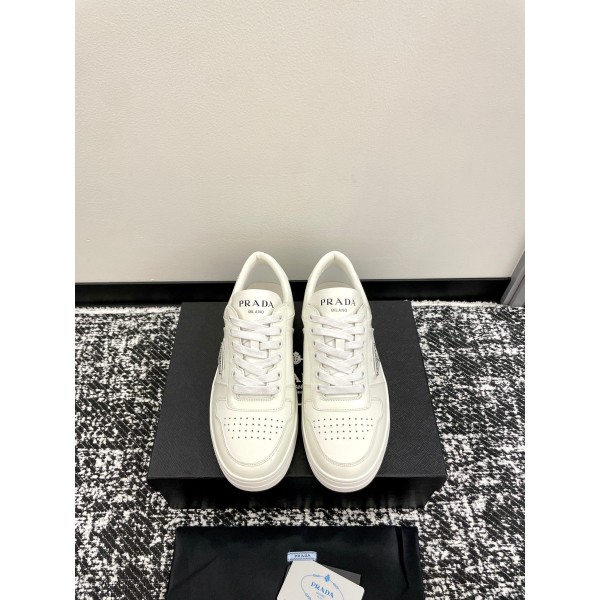 디자인: 유행을 타지 않는 클래식한 농구화 실루엣에 프라다 특유의 세련미를 더한 데일리 화이트 스니커즈 포인트: 측면의 프라다 삼각 로고가 확실한 존재감을 드러내며, 어떤 스타일에도 고급스럽게 어우러짐 소재: 부드럽고 매끄러운 최고급 소가죽 갑피와 발을 편안하게 감싸주는 가죽 안감 사용 바닥창: 미끄럼 방지에 탁월한 물결 무늬 특수 바닥창을 적용하여 안정감 있는 보행 가능 활용도: 사계절 내내 신기 좋으며, 슬랙스나 청바지 등 모든 옷차림을 완성해 주는 만능 아이템 구성: 남녀 공용으로 제작되어 세련된 커플화로도 강력 추천 사이즈: 35 ~ 44 (공용 사이즈) ㅡ #신발