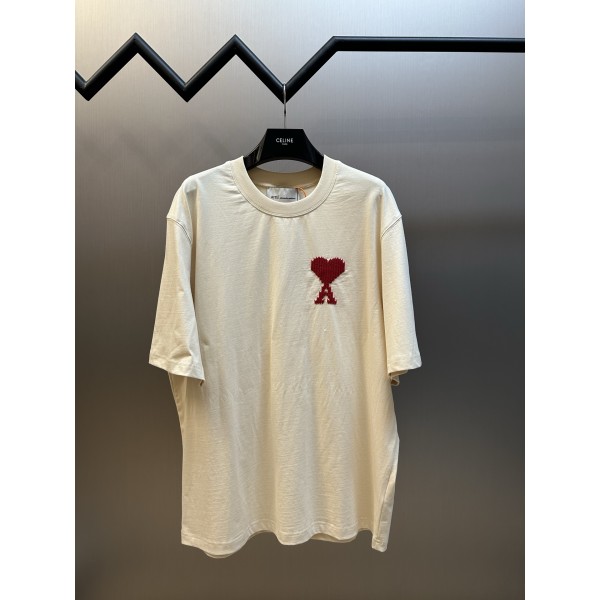 "픽셀 하트 로고와 레터 자수가 포인트인 티셔츠" 소재: 부드러운 촉감의 평직 코튼 원단 사용. 디테일: 가슴 전면 픽셀 형태의 하트 A 로고 자수, 후면 AMI 레터 자수 디테일, 수입 자수 기계 공정으로 완성된 정교한 자수. 핏: 자연스럽게 떨어지는 편안한 실루엣. 스타일: 로고 포인트가 강조된 캐주얼 티셔츠 스타일. SIZE: S, M, L, XL ㅡ #의류