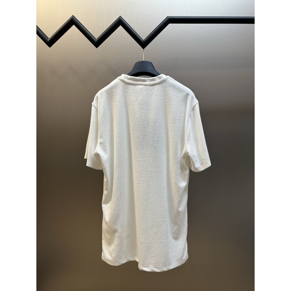 "삼각 로고와 타월 텍스처가 포인트인 티셔츠" 소재: 부드러운 타월 코튼 원단으로 포근하고 입체적인 촉감. 디테일: 가슴 전면 프라다 시그니처 삼각 로고 장식, 전용 기계 적외선 위치 설정 공정으로 정확하게 고정된 로고 디테일, 이중 워싱 가공으로 안정적인 형태 유지. 핏: 자연스럽게 떨어지는 편안한 실루엣. 스타일: 텍스처가 돋보이는 미니멀 캐주얼 스타일. SIZE: S, M, L, XL ㅡ #의류