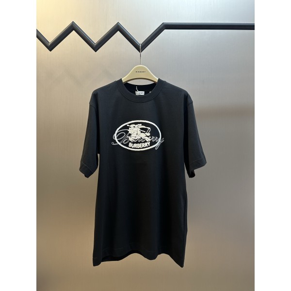"패치와 입체 장식 디테일이 포인트인 티셔츠" 소재: 15수 컴팩트 코튼 평직 원단으로 탄탄하고 부드러운 착용감. 디테일: 가슴 전면 버버리 전마 패치 장식, 벨벳 질감의 플록 프린트 로고, 체인 스티치 자수와 타월 자수로 완성된 입체 장식, 32수 고밀도 1×1 립 넥라인. 핏: 자연스럽게 떨어지는 레귤러 실루엣. 스타일: 클래식 로고 패치가 돋보이는 캐주얼 티셔츠 스타일. SIZE: XS, S, M, L ㅡ #의류