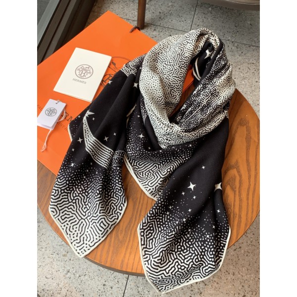 “캐시미어와 실크 소재에 페가수스 프린트를 더한 에르메스 시그니처 숄 스카프” 소재: 캐시미어 70%, 실크 30% 혼방 원단. 디테일: 월광 페가수스 프린트 디자인, 수작업 롤 엣지 마감. 사이즈: 140 × 140 cm ㅡ #스카프