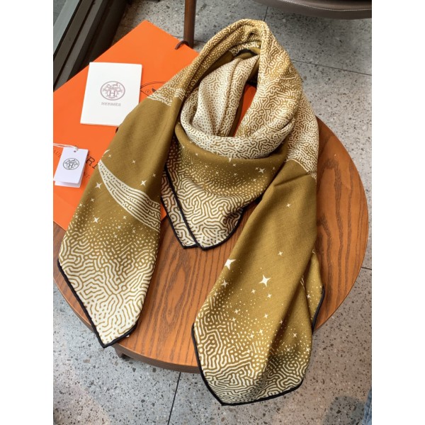 “캐시미어와 실크 소재에 페가수스 프린트를 더한 에르메스 시그니처 숄 스카프” 소재: 캐시미어 70%, 실크 30% 혼방 원단. 디테일: 월광 페가수스 프린트 디자인, 수작업 롤 엣지 마감. 사이즈: 140 × 140 cm ㅡ #스카프