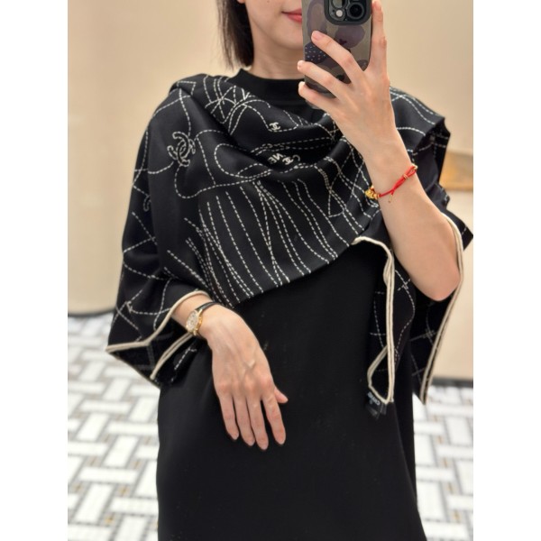 “샤넬 시그니처 까멜리아 모티프가 돋보이는 대형 스카프” 소재: 실크 소재 기반 원단, 양면 동일 컬러 프린트 처리. 디테일: 까멜리아 플라워 패턴 프린트, 고밀도 원단 사용. 사이즈: 140 × 140 cm. 컬러: 블랙, 화이트. ㅡ #스카프