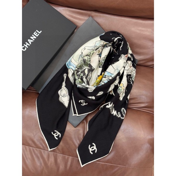 “샤넬 아뜰리에 컬렉션에서 영감을 받은 대형 캐시미어 실크 스카프” 소재: 캐시미어 70%, 실크 30% 혼방 원단. 사이즈: 135 × 135 cm. ㅡ #머플러