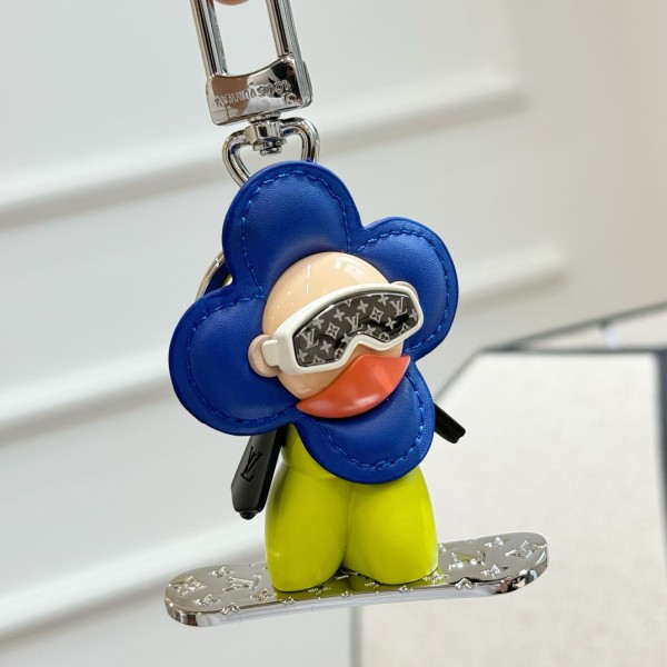 “스노보드 비비엔 인형이 포인트인 키링” 소재: PU 소재, 스틸 금속. 디테일: 스노보드 비비엔 캐릭터 디자인, 해바라기 모티프 장식, 루이비통 로고 디테일. 스타일: 가방 참 또는 열쇠 장식으로 활용 가능한 키링 액세서리. ㅡ #etc