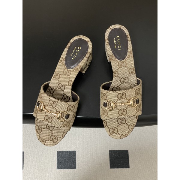 "골드 홀스빗 장식 포인트의 오픈토 슬리퍼 샌들" 소재: 양가죽, GG 캔버스 어퍼 / 양가죽 안감 디테일: 골드 홀스빗 메탈 장식, 오픈토 디자인, 이탈리아 천연가죽 아웃솔 스타일: 데일리, 썸머룩 매치 쉬운 샌들 굽높이: 5.5cm SIZE: 35,36,37,38,39,40,41,42 ㅡ #신발