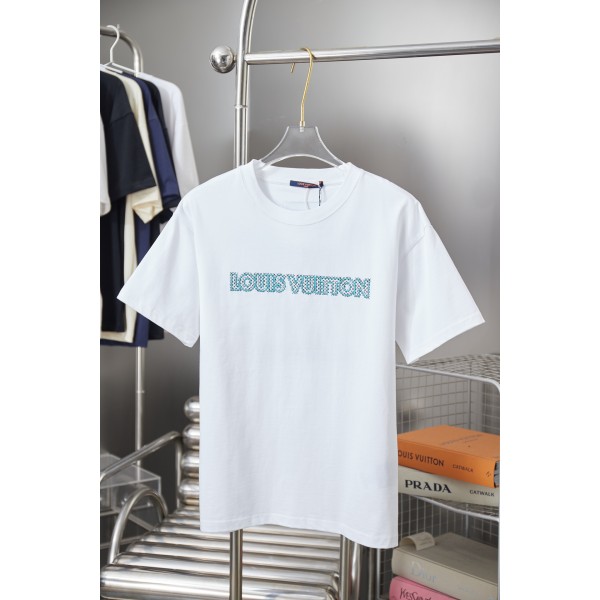 디자인: 심플한 실루엣의 베이직 반소매 티셔츠 포인트: 다양한 자수 기법이 적용된 LV 로고 디테일 소재: 100% 코튼 원단 특징: 탄탄한 코튼 원단으로 형태감을 유지하며 편안한 착용감 제공 정교한 자수 디테일로 완성도 높은 마감 무드: 깔끔하고 고급스러운 캐주얼 데일리 스타일 사이즈: S, M, L, XL ㅡ #의류
