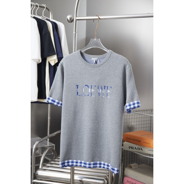 로에베(LOEWE) 체크 자카드 레터 니트 반팔 티셔츠 의류 > 남성 TEE & TOP