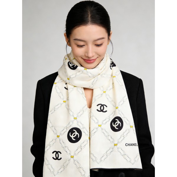 • 샤넬(CHANEL) 캐시미어 실크 숄 목도리 스카프