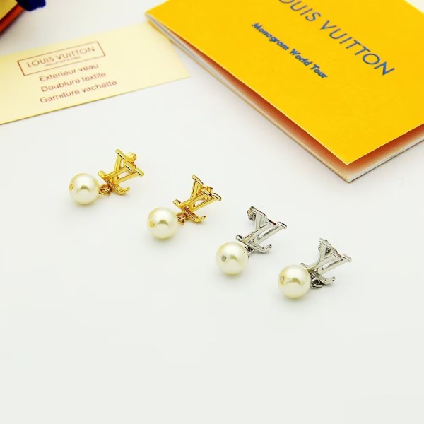 "LV 로고와 진주 장식이 포인트인 여성스러운 이어링" 소재: 메탈 소재와 레진 진주 장식 디테일: LV 레터 로고 장식, 하단 드롭 진주 디테일, 광택감 있는 진주 장식 포인트 스타일: 우아하고 여성스러운 분위기의 귀걸이로 데일리 및 포인트 스타일링에 잘 어울리는 디자인 ㅡ #etc