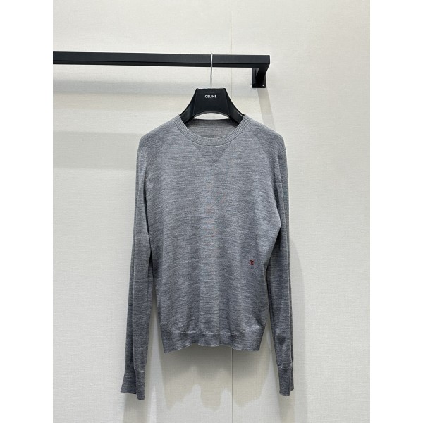 샤넬(CHANEL) 배색 로고 자수 라운드넥 긴팔 니트 의류 > 여성 TEE& TOP