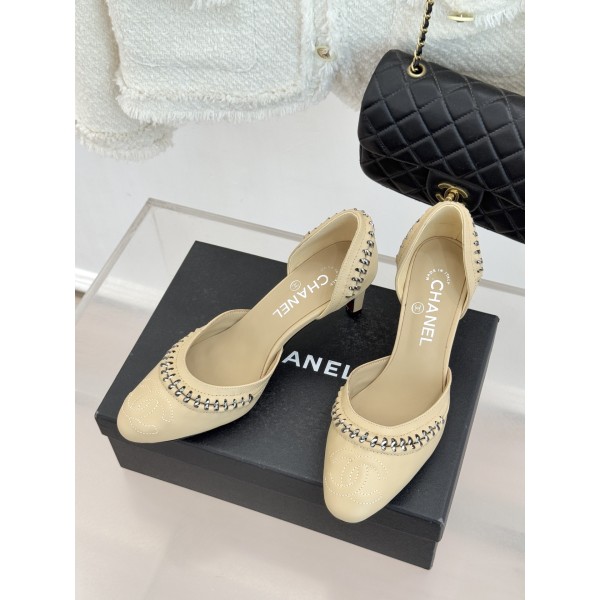샤넬(CHANEL) 배색 컷아웃 힐 샌들 신발 > 힐/펌프스
