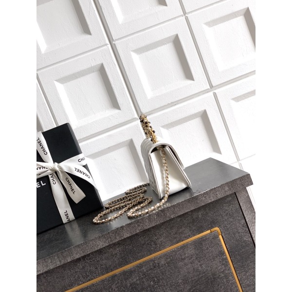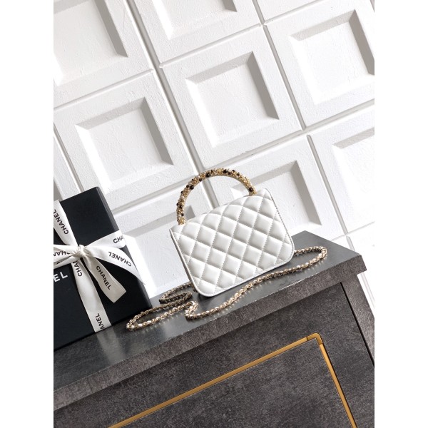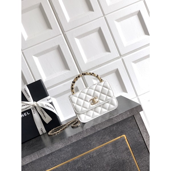 • Chanel 샤넬 26C 진주 핸들 트위드 백 (쉐이크 화이트) 숄더백 가방 스몰