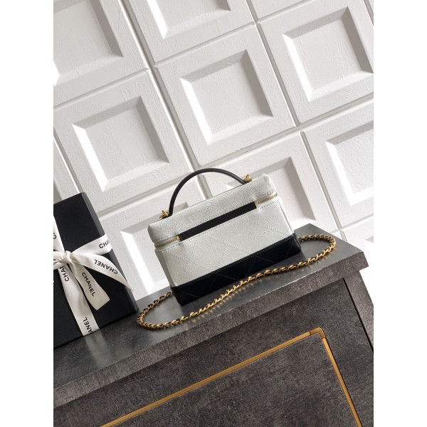 디자인: 시크한 블랙 램스킨과 차분하고 도시적인 라이트 그레이 스웨이드의 모던한 질감 대비 무드: 흑백의 미학이 돋보이는 **'타임리스 클래식'**의 정석, 어떤 룩에도 스며드는 고급스러운 무채색 조합 포인트: 탄탄하고 귀여운 사각 셰이프와 빈티지한 감성의 더블 체인 디테일 활용도: 숄더·크로스부터 핸들 토트까지 가능한 2-Way 스타일링 & 작지만 알찬 반전 수납력 사이즈: 19cm (유행을 타지 않는 가장 실용적인 황금 사이즈) ㅡ #가방