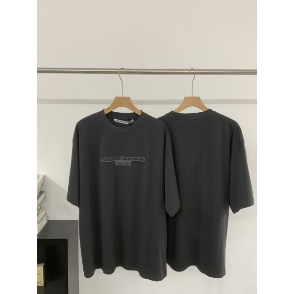 "펠트 패치 자수 로고가 포인트인 하이스트릿 반팔 티셔츠" 소재: 2고중량 워싱 순면 소재로 탄탄한 원단감과 안정적인 착용감. 디테일: 가슴 alexanderwang 레터링 펠트 패치 자수 로고 디테일, 워싱 딥그레이 컬러와 봉제 디테일 포인트. 핏: 남녀 공용 착용 가능한 중성적인 실루엣의 기본 핏. SIZE: S,M,L,XL ㅡ #의류