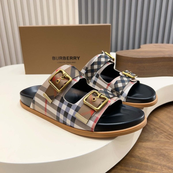 버버리(Burberry) TB 메탈 로고 크로스 레더 샌들 슬리퍼 신발 > 샌들/슬리퍼