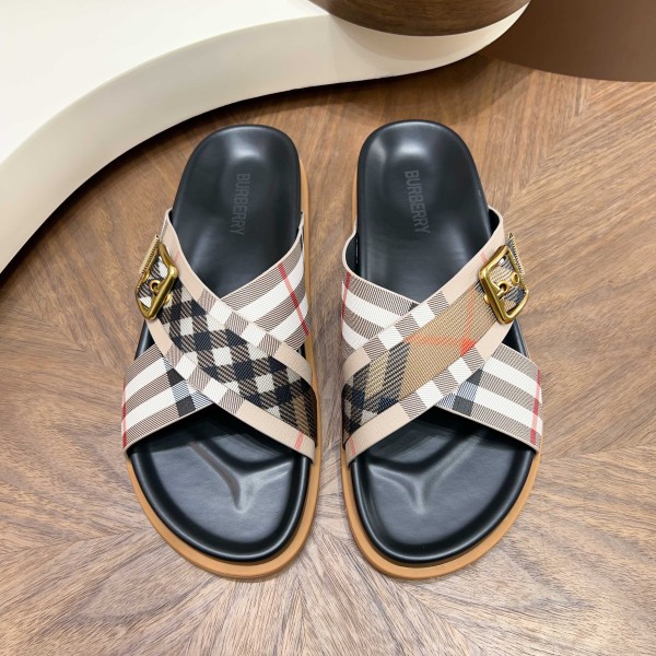 버버리(Burberry) TB 메탈 로고 크로스 레더 샌들 슬리퍼 신발 > 샌들/슬리퍼
