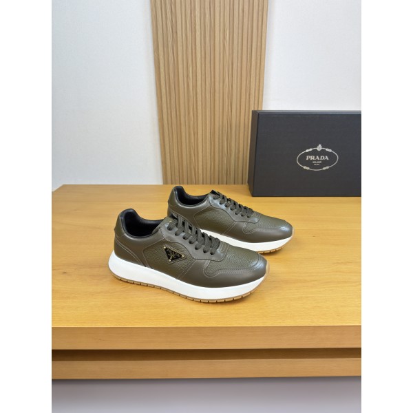 소재: 최상급 나파 소가죽 & 입체적인 리치 문양 소가죽 콤비 내피: 프리미엄 천연 수염 소가죽 인솔 (탁월한 흡습성) 아웃솔: 초경량 TPU 발포 고무 / 투톤(Two-tone) 성형 대창 포인트: 측면 프라다 상징 메탈 로고 버클 장식 디테일: 설포(혀) 부분 실크스크린 브랜드 로고 프린팅 특징: 이탈리안 특유의 정교한 마감과 고급스러운 가죽 텍스처의 조화 사이즈: 38 ~ 46 ㅡ #신발