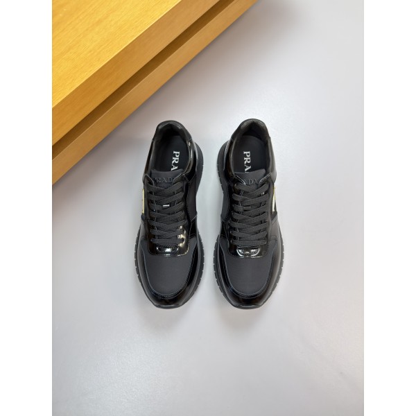 소재: 은은한 광택의 브러시드 카프스킨 & 고광택 프리미엄 캔버스 내피: 최상급 천연 수염 소가죽 인솔 (부드러운 착화감) 아웃솔: 초경량 TPU 발포 고무 / 투톤(Two-tone) 성형 대창 포인트: 측면 프라다 상징 메탈 로고 버클 장식 디테일: 설포(혀) 부분 입체적인 주입식(Injection) 브랜드 로고 특징: 고급스러운 가죽의 질감과 세련된 캔버스의 조화가 돋보이는 디자인 사이즈: 38 ~ 46 ㅡ #신발