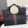 모델: 853971 소재: 경량 블랙 GG 캔버스 & 블랙 소프트 레더 트리밍 안감: 브랜드 아카이브 다이아몬드 퀼팅 패턴의 블랙 캔버스 라이닝 디테일: 더블 G(Double G) 로고, 레드/그린 웹(Web) 스트라이프 엣지, 골드 톤 하드웨어 특징: 이탈리아의 유산을 담은 질리오 시리즈, 실용적인 탈부착 미니 파우치 및 D링 포함 잠금: 깔끔한 실루엣을 유지해 주는 히든 마그네틱(자석) 클로징 사이즈: 42~60(가로) x 47(세로) x 16(폭)cm (핸들 드롭 18cm) ㅡ #가방