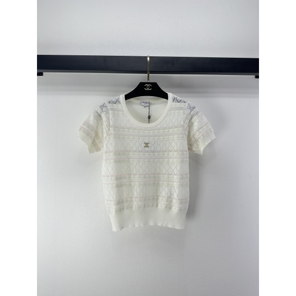 Chanel 샤넬 화이트 펀칭 니트 반팔 의류 > 여성 TEE& TOP