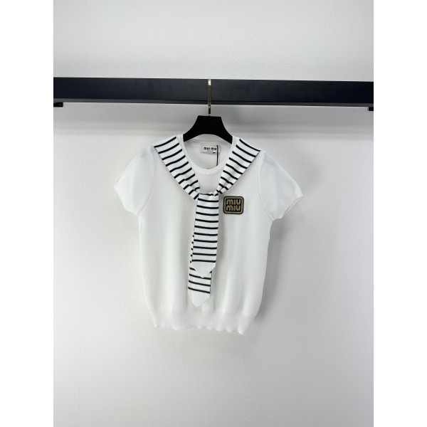 miumiu 미우미우 스트라이프 숄 니트 반팔 의류 > 여성 TEE& TOP