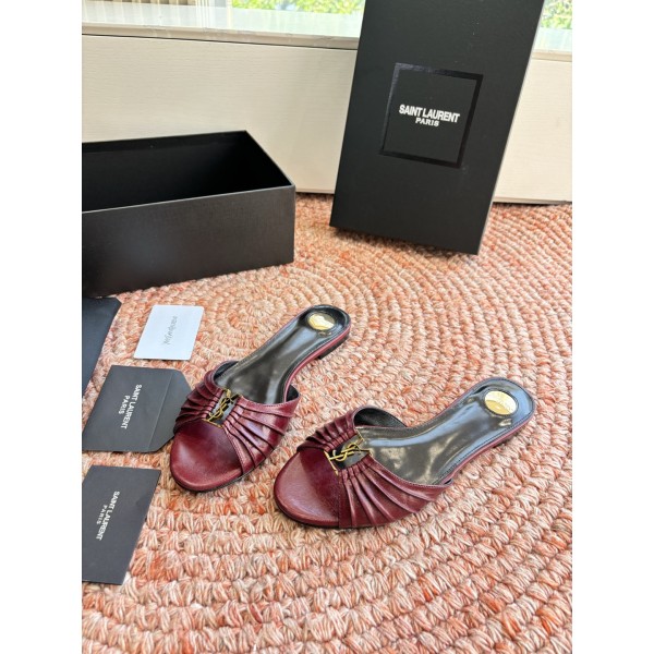 "셔링 디테일과 YSL 로고 장식이 돋보이는 페미닌 힐 슬리퍼" 소재: 천연가죽 어퍼 / 가죽 인솔 / 가죽 아웃솔 디테일: YSL 로고 메탈 장식, 셔링 가죽 스트랩, 오픈토 디자인 스타일: 발 라인을 자연스럽게 보정해주는 페미닌·럭셔리 스타일 SIZE: 35,36,37,38,39,40,41,42 ㅡ #신발