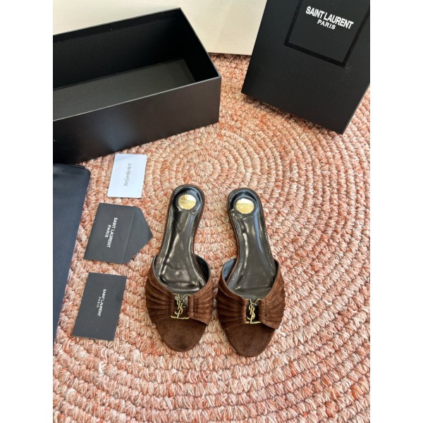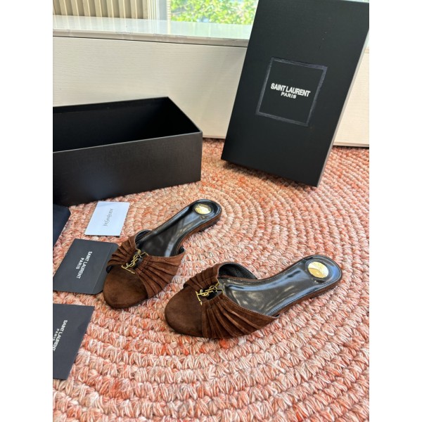 "셔링 디테일과 YSL 로고 장식이 돋보이는 페미닌 힐 슬리퍼" 소재: 천연가죽 어퍼 / 가죽 인솔 / 가죽 아웃솔 디테일: YSL 로고 메탈 장식, 셔링 가죽 스트랩, 오픈토 디자인 스타일: 발 라인을 자연스럽게 보정해주는 페미닌·럭셔리 스타일 SIZE: 35,36,37,38,39,40,41,42 ㅡ #신발
