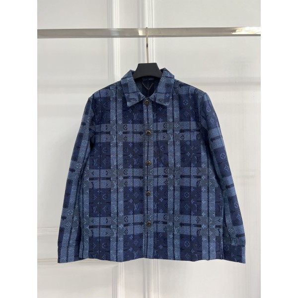 "자카드 체크 패턴이 돋보이는 클래식 폴로 롱슬리브" 소재: 코튼 플란넬 원단으로 제작되어 부드럽고 따뜻한 착용감 디테일: 모노그램 체크 자카드 패턴, 펄 버튼 디테일, LV 로고 패치, 하프 플라켓 구조, 카라 및 소매 코튼 포플린 배색 핏: 자연스럽게 떨어지는 편안한 실루엣 SIZE: S,M,L,XL ㅡ #의류