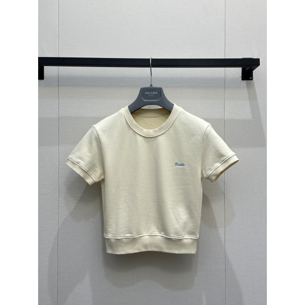 프라다(PRADA) 배색 로고 자수 반팔 티셔츠 의류 > 여성 TEE& TOP