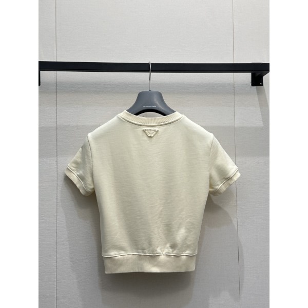프라다(PRADA) 배색 로고 자수 반팔 티셔츠 의류 요약정보 및 구매