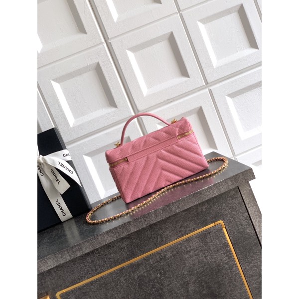 Chanel 샤넬 V-스티치 퀼팅 플랫 캐비어 런치박스 백 가방 > 샤넬