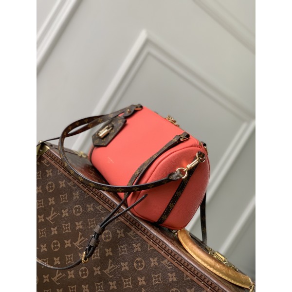 디자인: 루이비통의 전설적인 여행 가방인 **키폴(Keepall)**의 오리지널 요소를 도시적인 스타일로 재해석한 모델입니다. 비비드한 수박색 컬러가 강렬하면서도 생기 넘치는 분위기를 연출합니다. 소재 및 디테일: 고급스러운 송아지 가죽 바디에 브랜드의 상징적인 모노그램 패턴을 트리밍과 안감에 적용했습니다. 반짝이는 골드 메탈 하드웨어와 시그니처 자물쇠, 키 벨트가 우아함을 더합니다. 실용성: 일상 필수품을 넉넉히 담을 수 있는 입체적인 수납 공간을 갖추었으며, 루이비통의 여행 전통을 담아 다양한 방식으로 편안하게 휴대할 수 있습니다. 사이즈: 26 x 17 x 13.5 (cm) ㅡ #가방