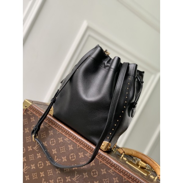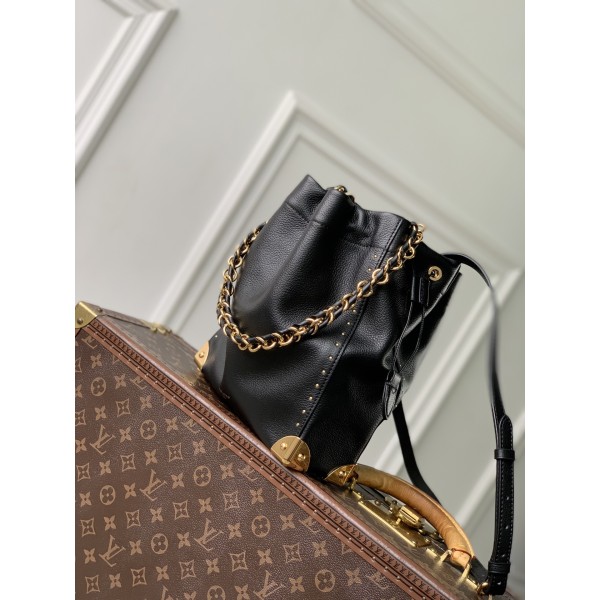 디자인 및 영감: 루이비통의 유서 깊은 노에(Noé) 수통백 실루엣에 브랜드의 상징인 하드 트렁크 디테일을 접목했습니다. 견고한 모서리 장식과 금속 부자재가 브랜드의 여행 헤리티지를 고스란히 보여줍니다. 소재 및 디테일: 세련된 블랙 소가죽 소재로 제작되어 시크한 매력을 선사하며, 탈착 가능한 브레이디드 체인 스트랩이 더해져 고급스러운 포인트를 완성합니다. 수납 및 기능: 클래식한 드로스트링(복조리) 잠금 방식으로 소지품을 안전하게 수납할 수 있으며, 독특한 하드웨어 덕분에 가방의 형태가 무너지지 않고 유지됩니다. 사이즈: 23 x 27 x 8 (cm) ㅡ #가방