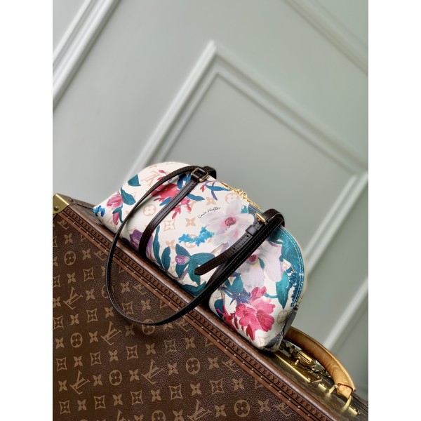 디자인: 가로로 긴 이스트-웨스트(E/W) 실루엣에 화사한 플라워 패턴과 골드 자물쇠로 포인트를 준 예술적인 백입니다. 소재: 은은한 베이지 톤의 모노그램 듄 캔버스와 대비되는 컬러 가죽 스트랩이 세련된 조화를 이룹니다. 수납: 스마트폰, 지갑 등 필수 소지품을 넉넉히 담을 수 있는 실용적인 크기입니다. 사이즈: 29 x 14 x 8 (cm) ㅡ #가방