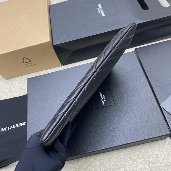 • [YSL] 생로랑 클래식 퀼팅 클러치백 - 미디움 (블랙 램스킨/골드) 가방