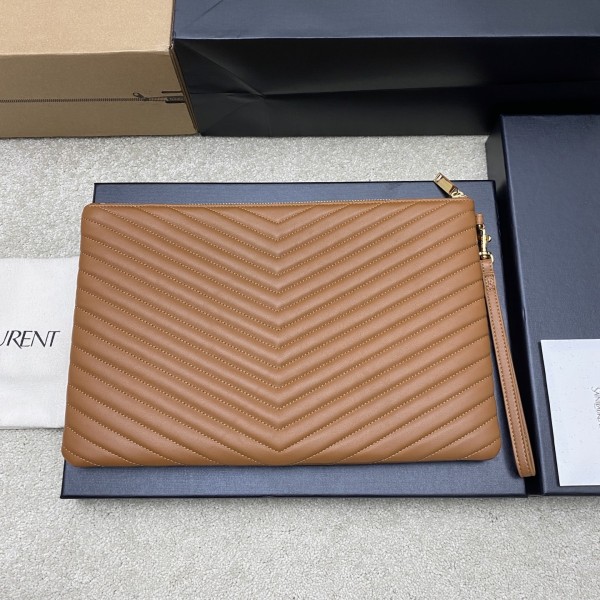 • [YSL] 생로랑 클래식 퀼팅 클러치백 - 라지 (카라멜 램스킨/골드) 가방
