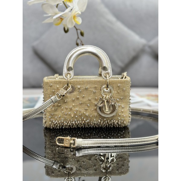 • [Dior] 레이디 디조이(Lady D-Joy) 마이크로 백 토트백 숄더백 가방 - 골드 비즈 자수