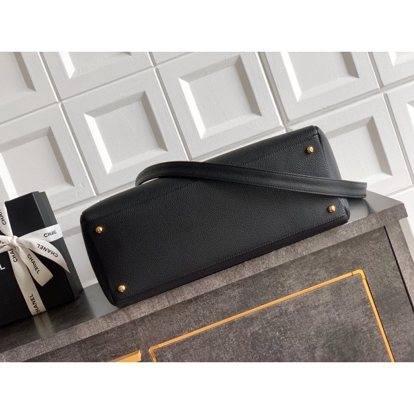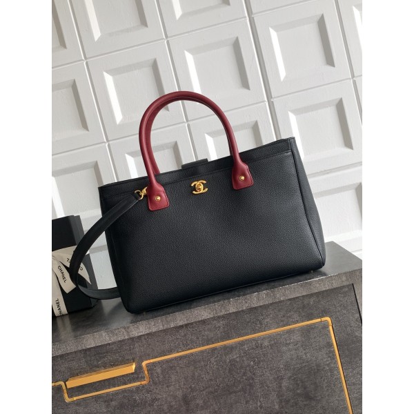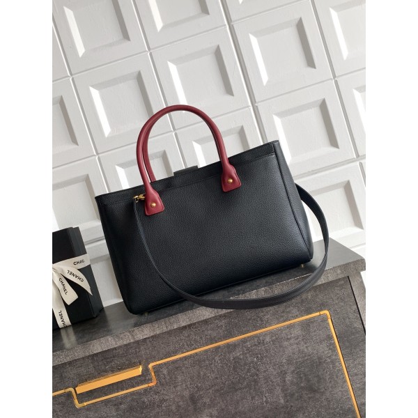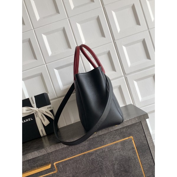 [Chanel] 샤넬 서프(Cerf) 토트백 가방 - 블랙 & 버건디 핸들 (금장) 미디움 > 샤넬