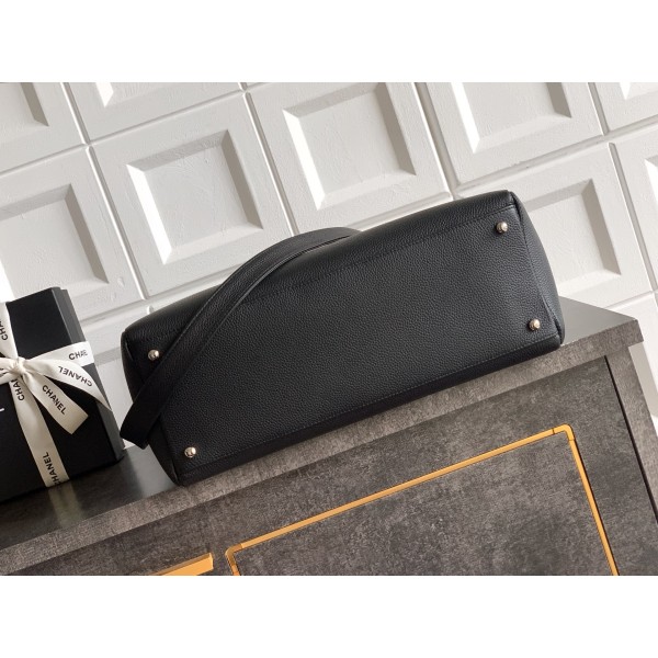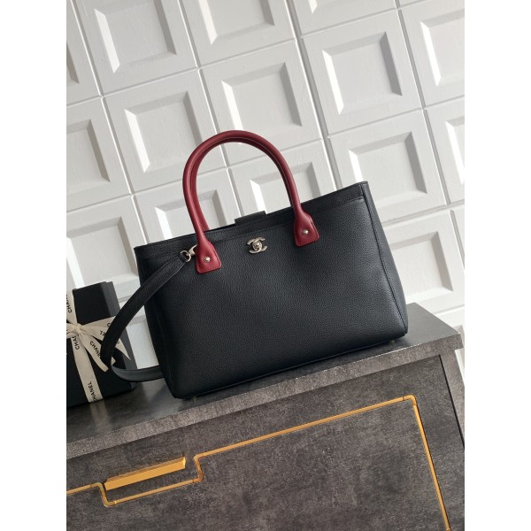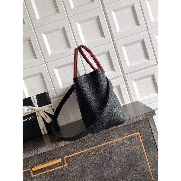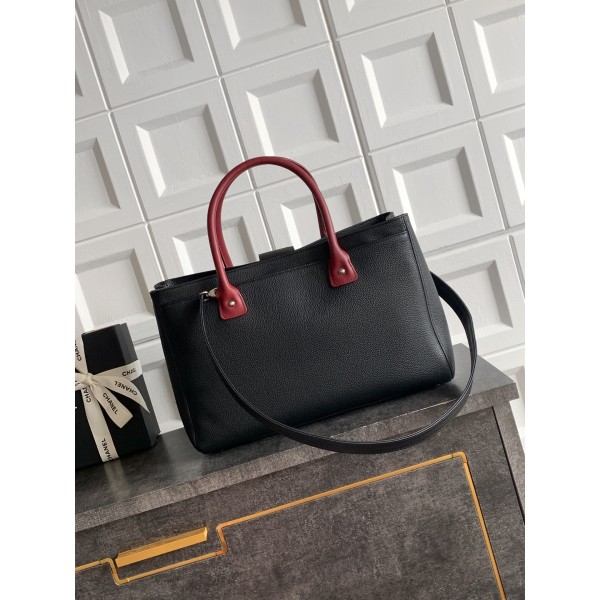 [Chanel] 샤넬 서프(Cerf) 토트백 가방 - 블랙 & 버건디 핸들 (은장) 미디움 > 샤넬
