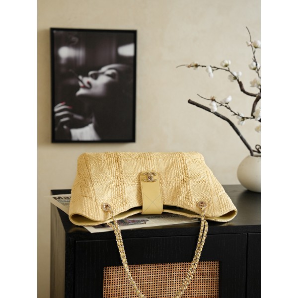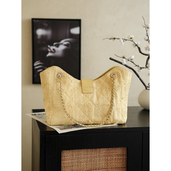 모델명: AS6090 (2026 크루즈 컬렉션) 소재: 내추럴한 **라피아**와 고급스러운 가죽의 조화 디자인: 라피아 특유의 계절감에 샤넬의 상징적인 골드 메탈 체인 포인트를 더해 우아함과 캐주얼함을 동시에 선사 스타일: 여유로운 실루엣의 쇼퍼백 스타일로, 휴양지 룩은 물론 세련된 데일리 서머 백으로 완벽 사이즈: 40 x 26 x 12 (cm) ※ 가로 최장길이 기준 ㅡ #가방