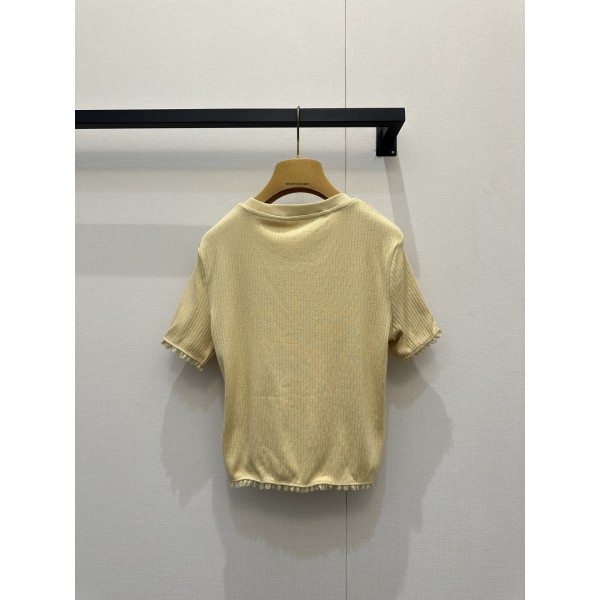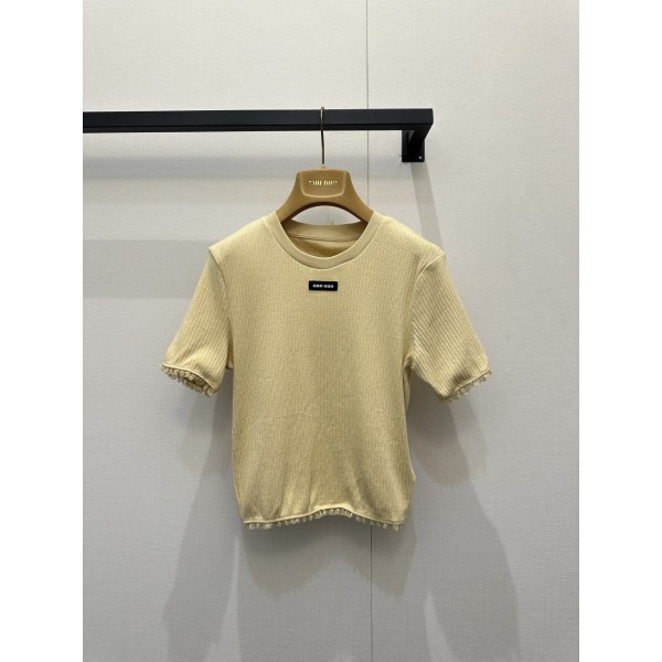 미우미우(MIU MIU) 레이스 리브 크롭 반팔 티셔츠 의류 > 여성 TEE& TOP