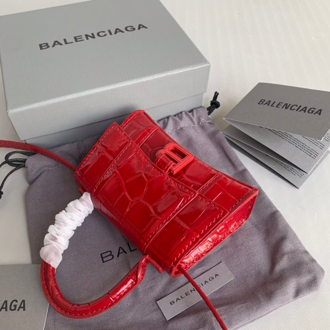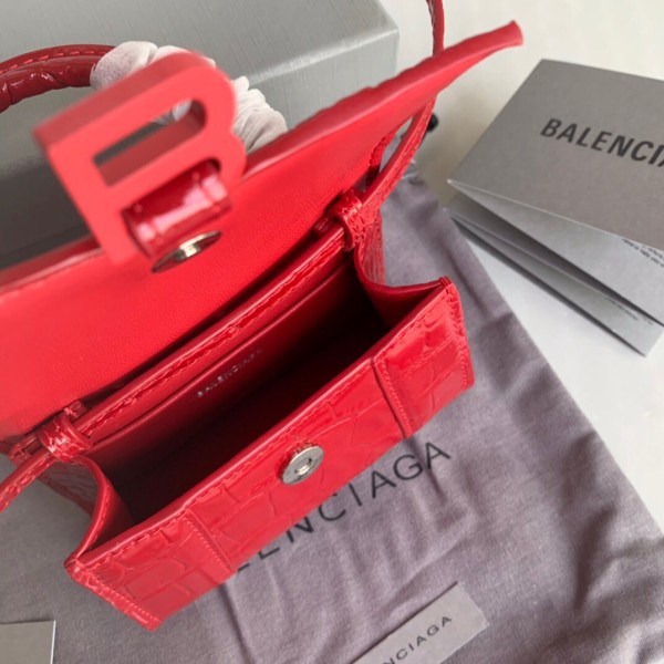 • 발렌시아가 Mini Hourglass 레드 탑핸들 백