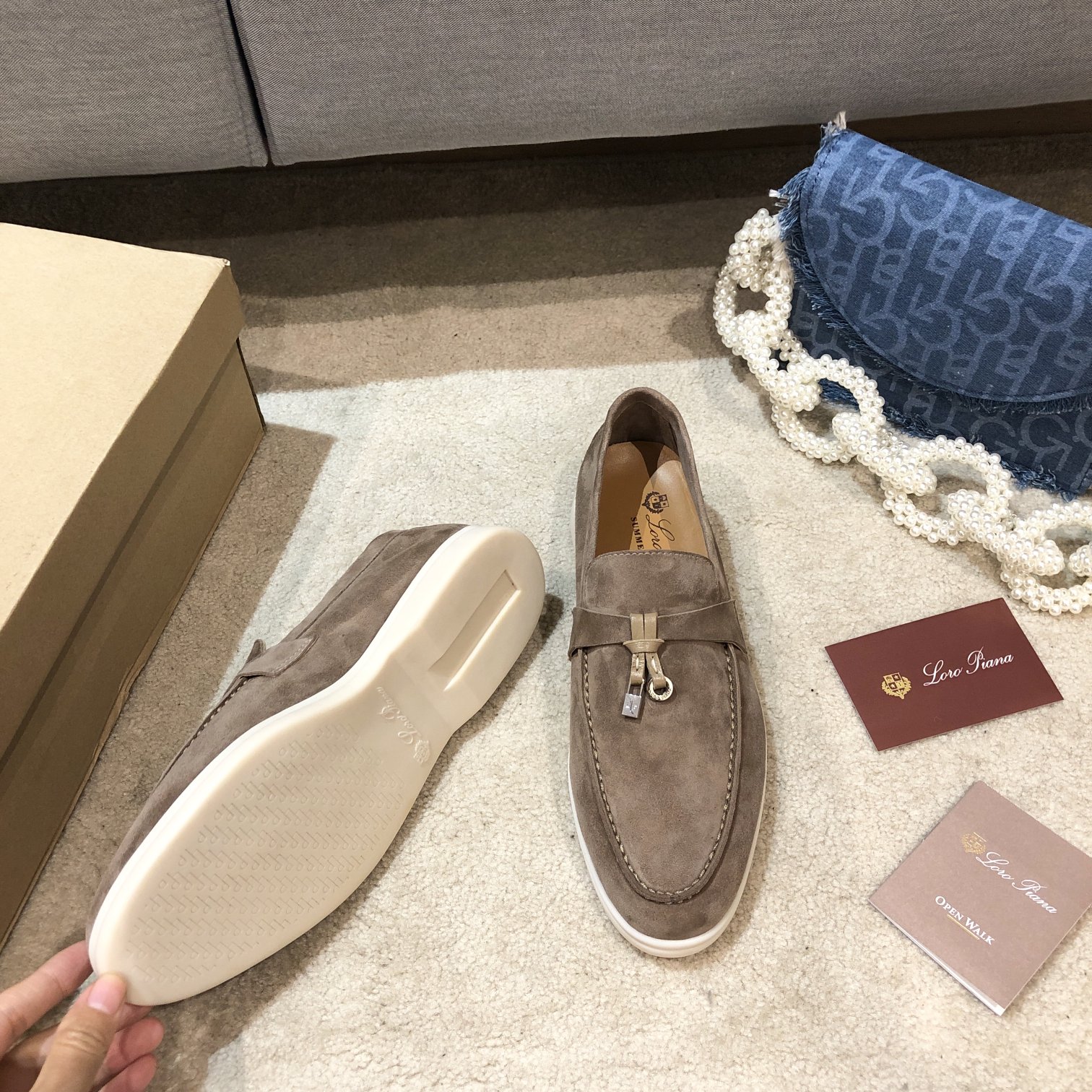 로로피아나 섬머 참 워크 스웨이드 펄 그레이 로퍼 요약정보 및 구매